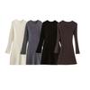 2025 Exportação Transfronteiriça Estilo Europeu e Americano Atacado Verão Justo ao Corpo Colarinho Meio Alto Manga Longa Tricô Vestido-Suéter