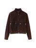Novedad Otoño 2025 Ropa de Mujer Estilo Europeo y Americano Pantalones de Moda con Bolsillo de Solapa Chaqueta Bomber de Gamuza Decorada