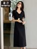 Vestido Zhenxi Nuevo Twist Cuello en V para Mujer Manga Corta Encaje Empalmado Delgado Elegante Elegante Vestidito Negro Dq863