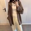 Suéter Coreano de Cuello Alto con Doble Cremallera para Mujer Otoño e Invierno Nuevo Holgado Talla Grande Casual Cárdigan Tejido Top Lazy