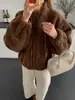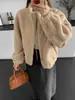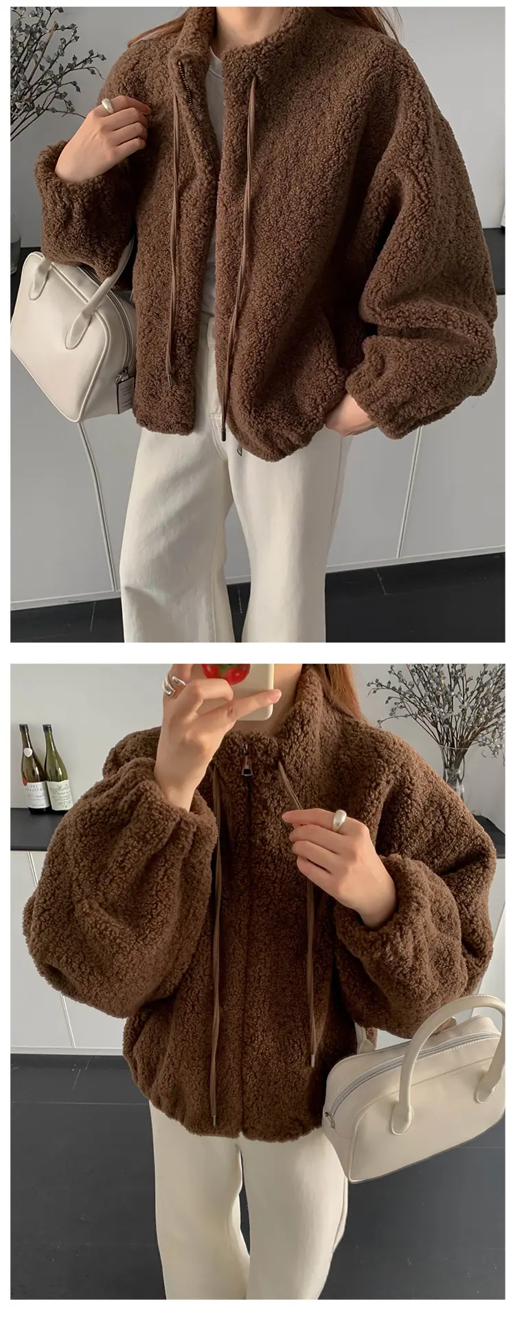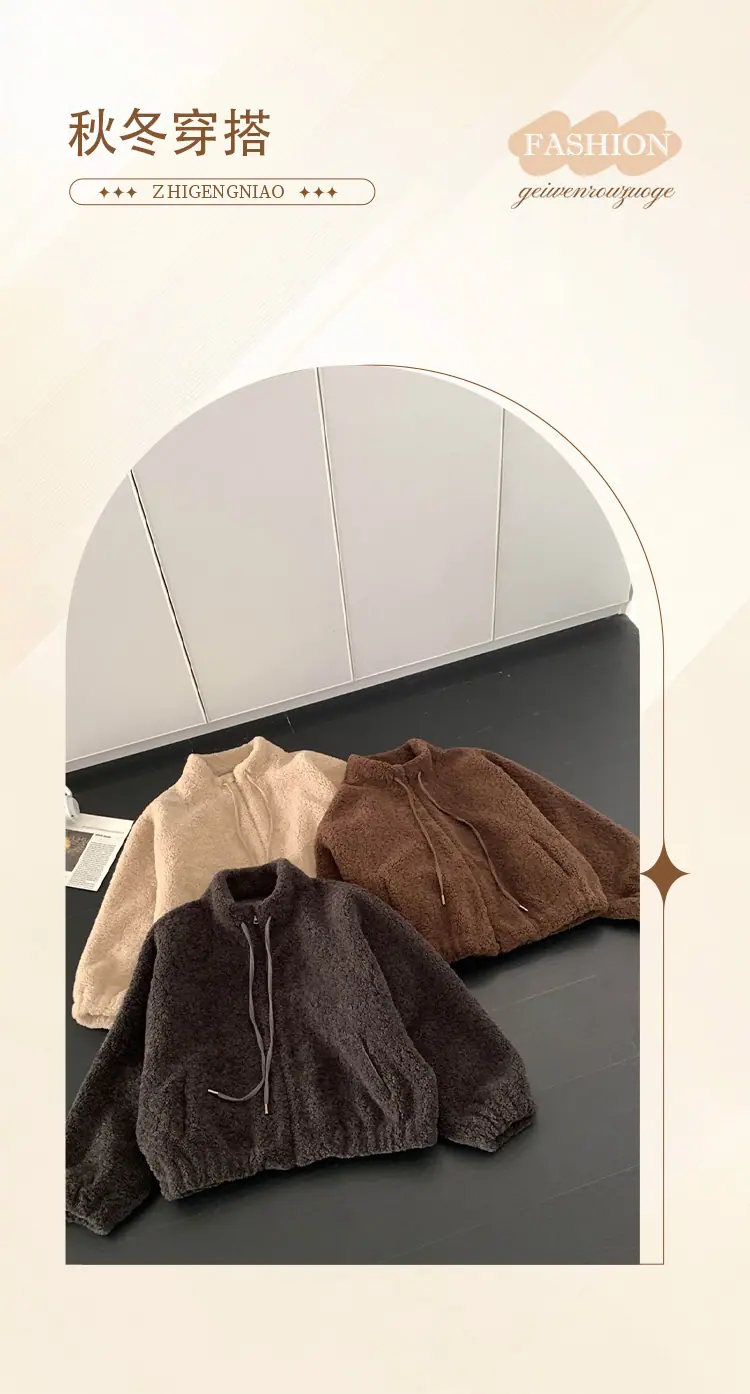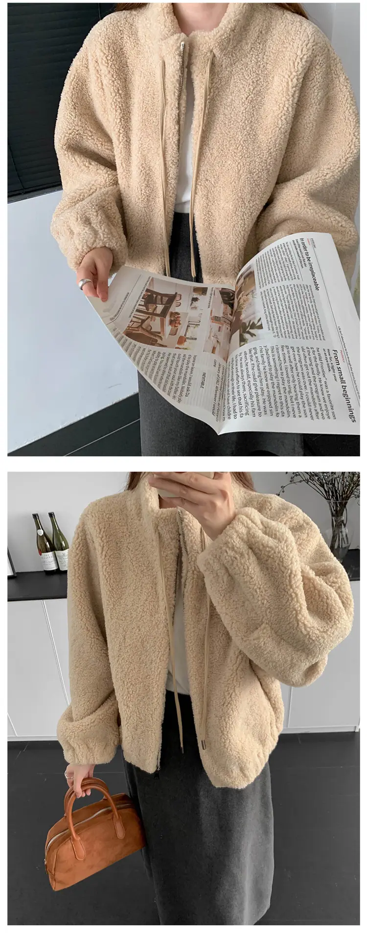 Abrigo de lana de cordero esponjoso con cremallera y cuello alto de nuevo temperamento de estilo coreano para otoño e invierno para mujer ZMC