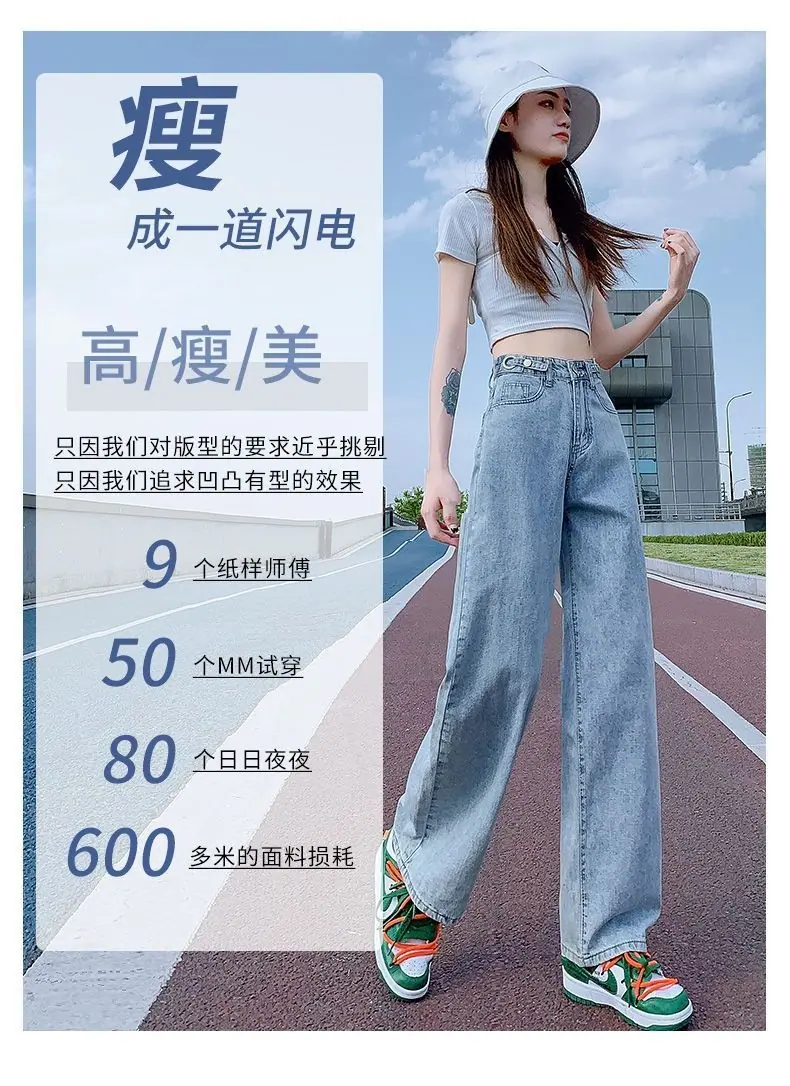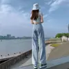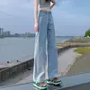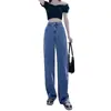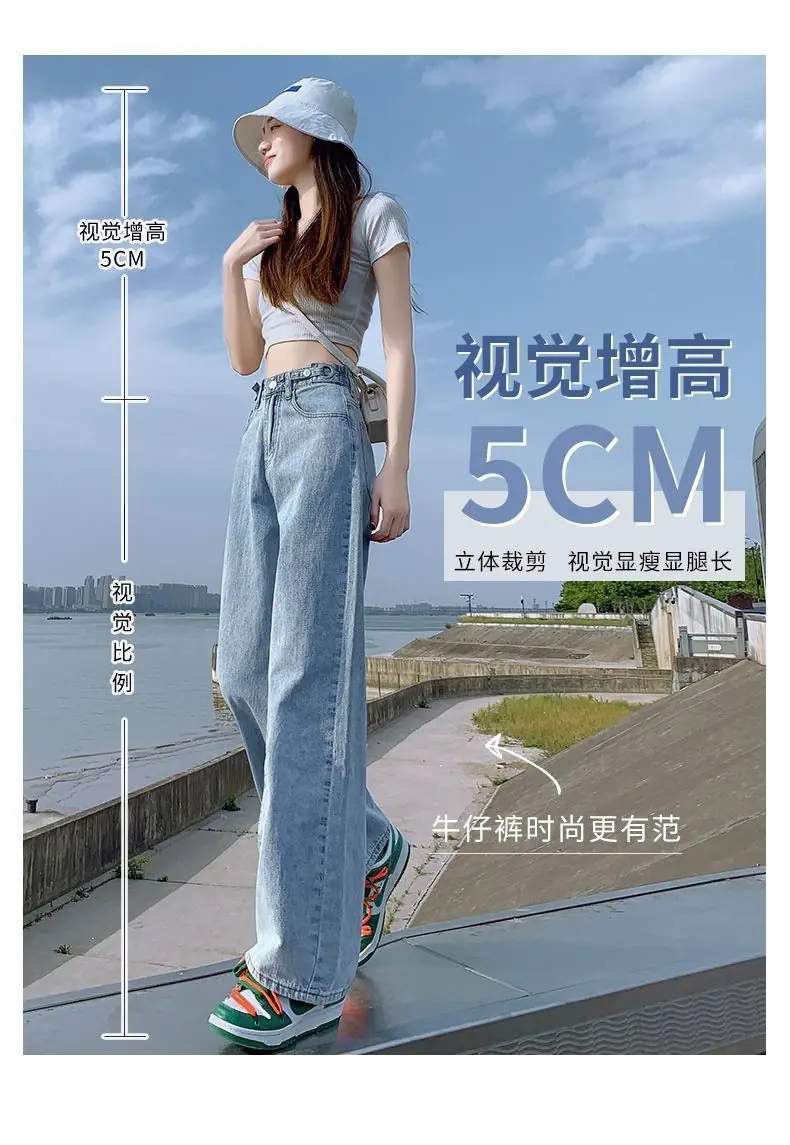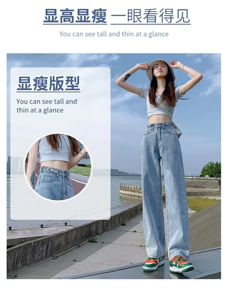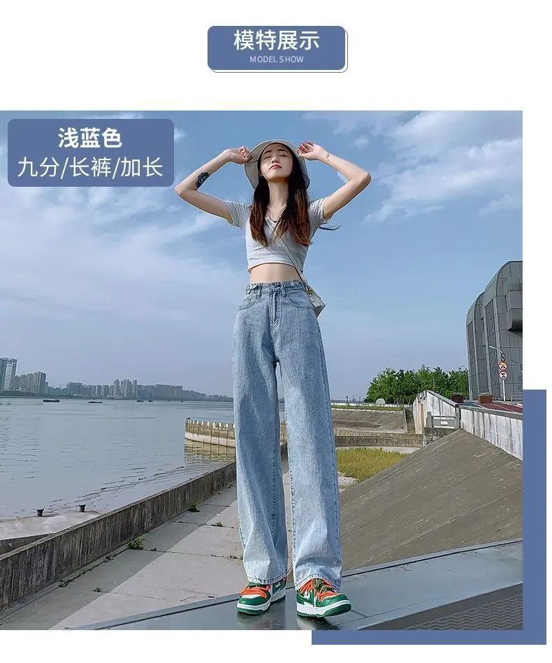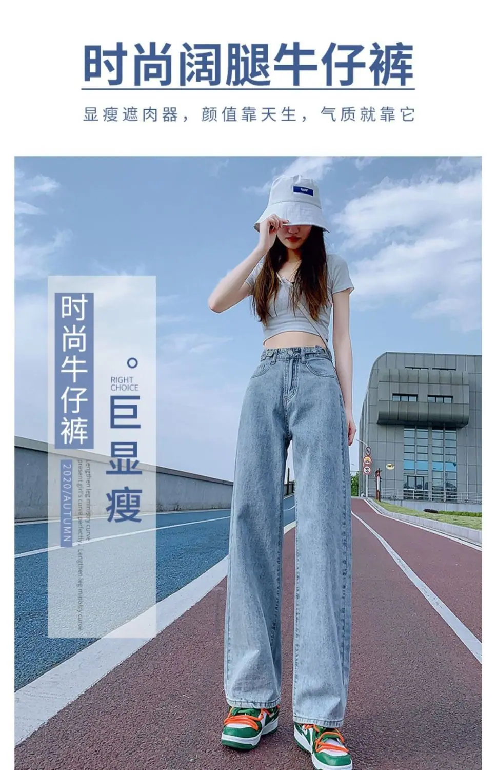 Jeans de pierna ancha de cintura alta para mujer 2025 otoño nuevo suelto adelgazante pierna recta caída pantalones largos hasta el piso versátil petite