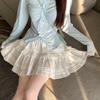 Falda Francesa Esponjosa con Volantes de Primavera y Verano Falda Dulce de Pastel Plisada Cintura Alta Falda A-Line para Mujer