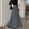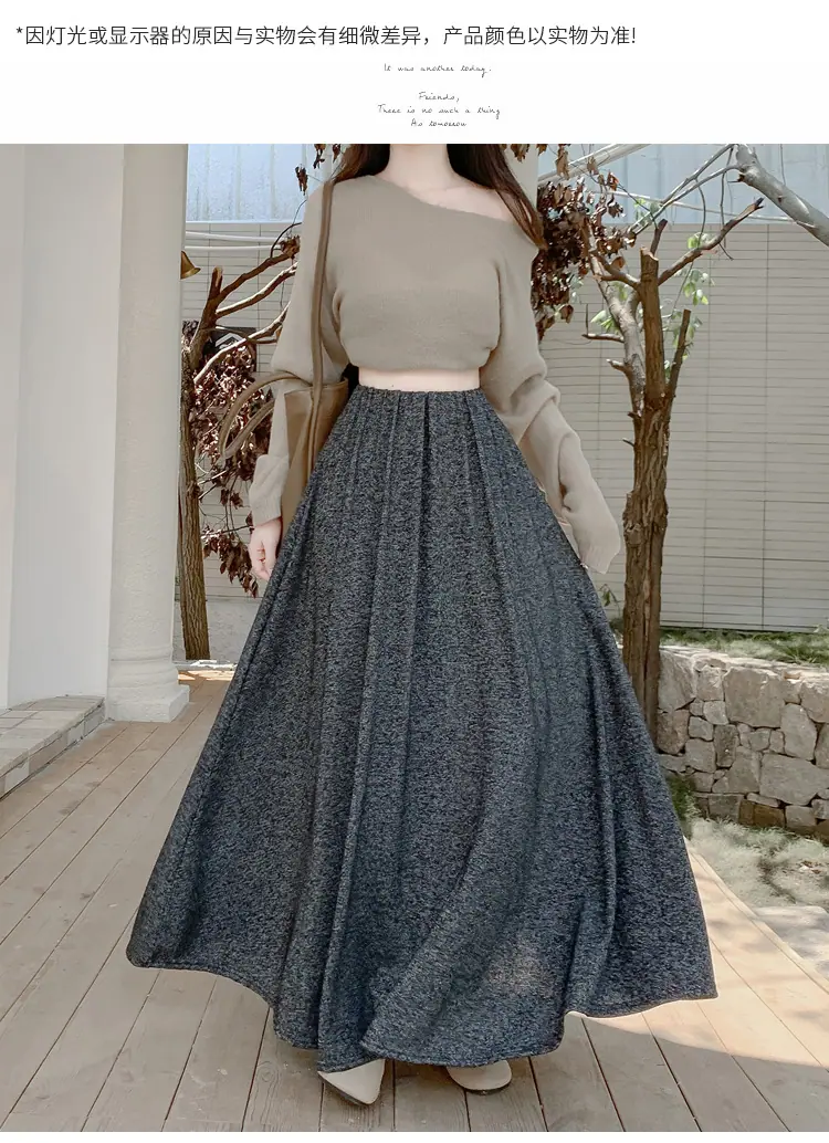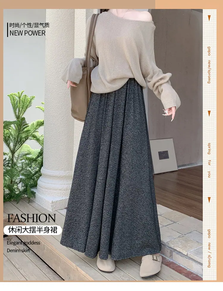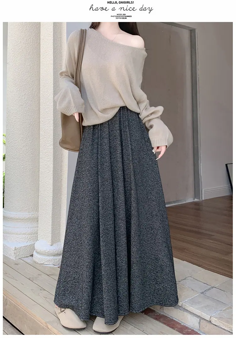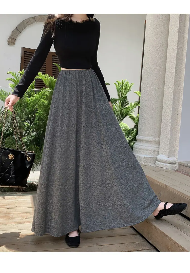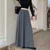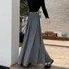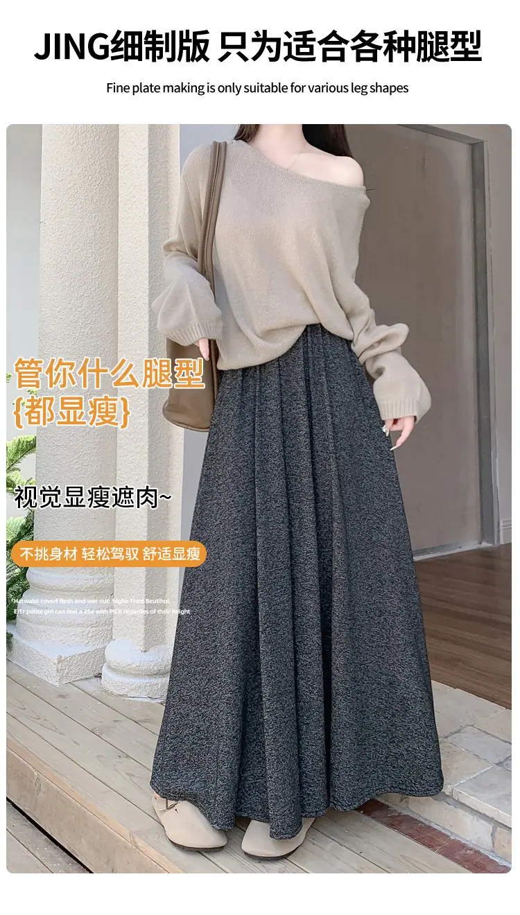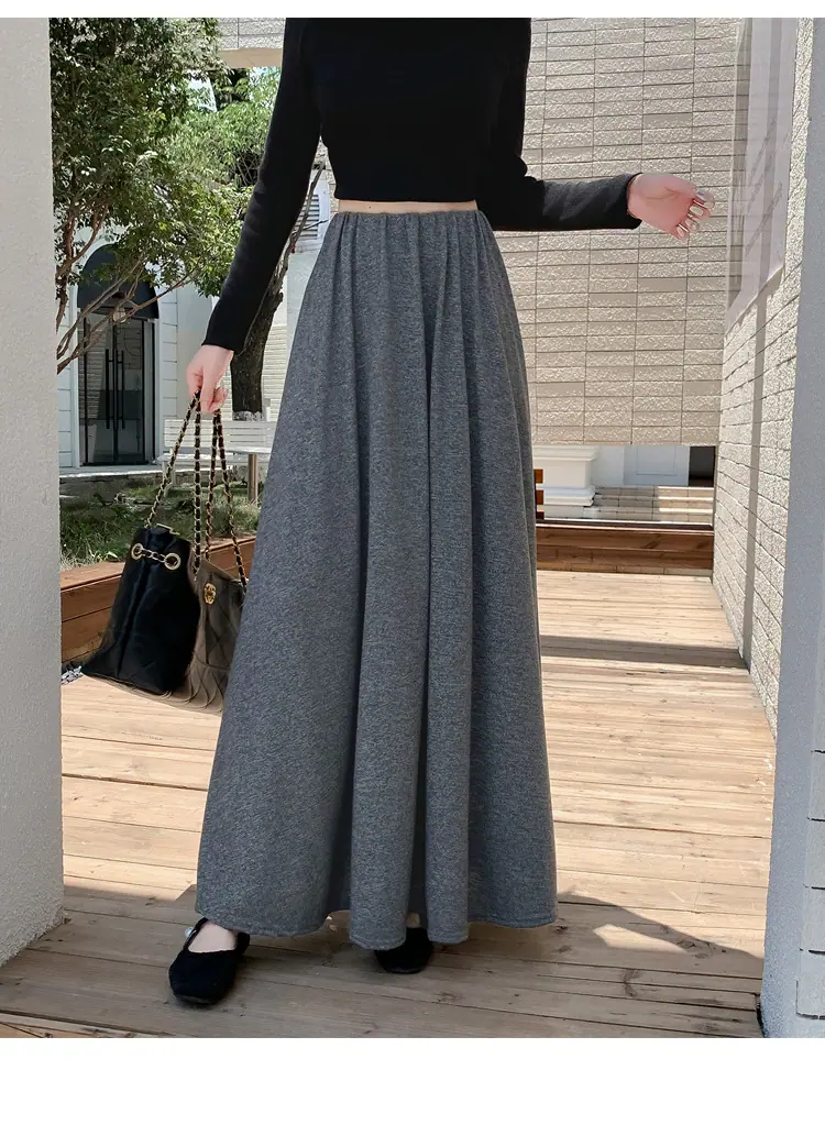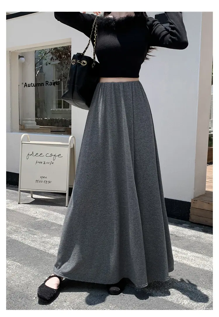 Falda de Cintura Alta Estilo Holgado Mujer Otoño Adelgazante Versátil Cintura Elástica Falda Larga A-line Falda Acampanada Falda de Punto