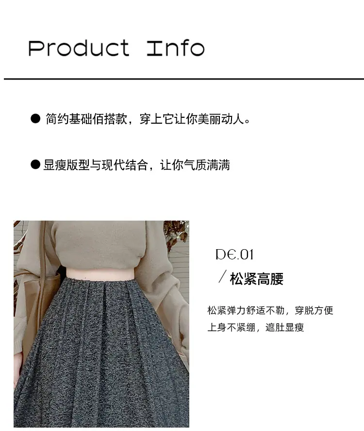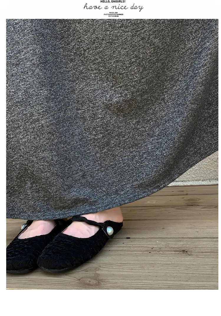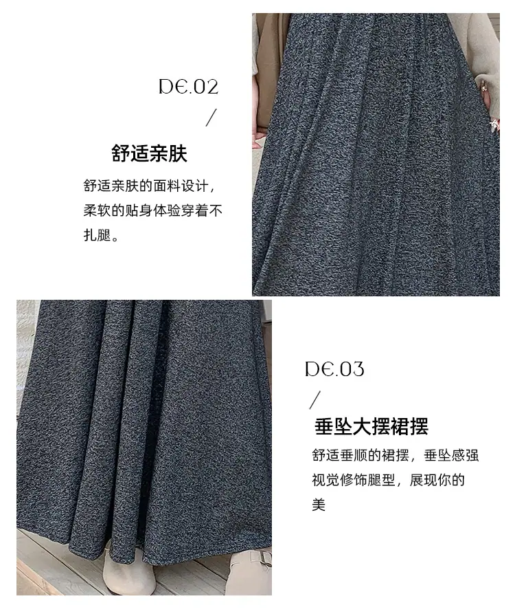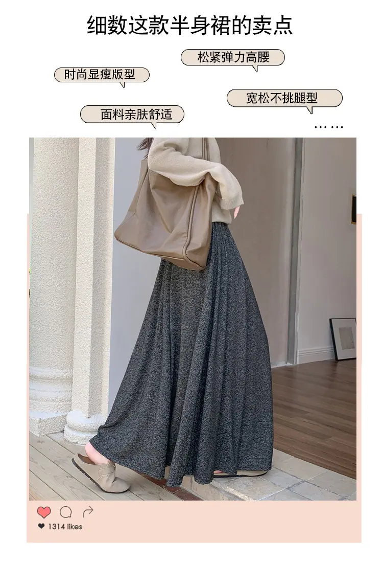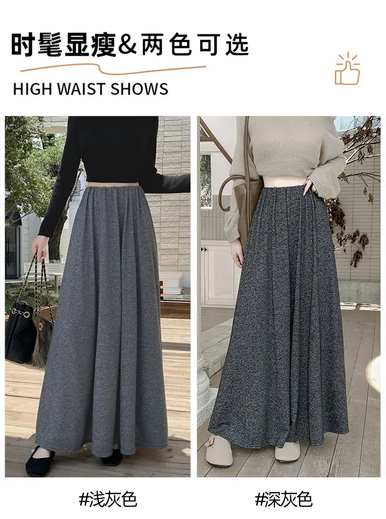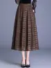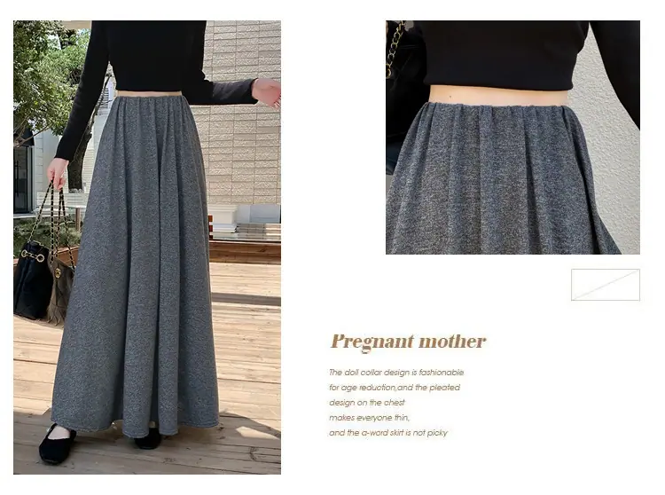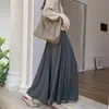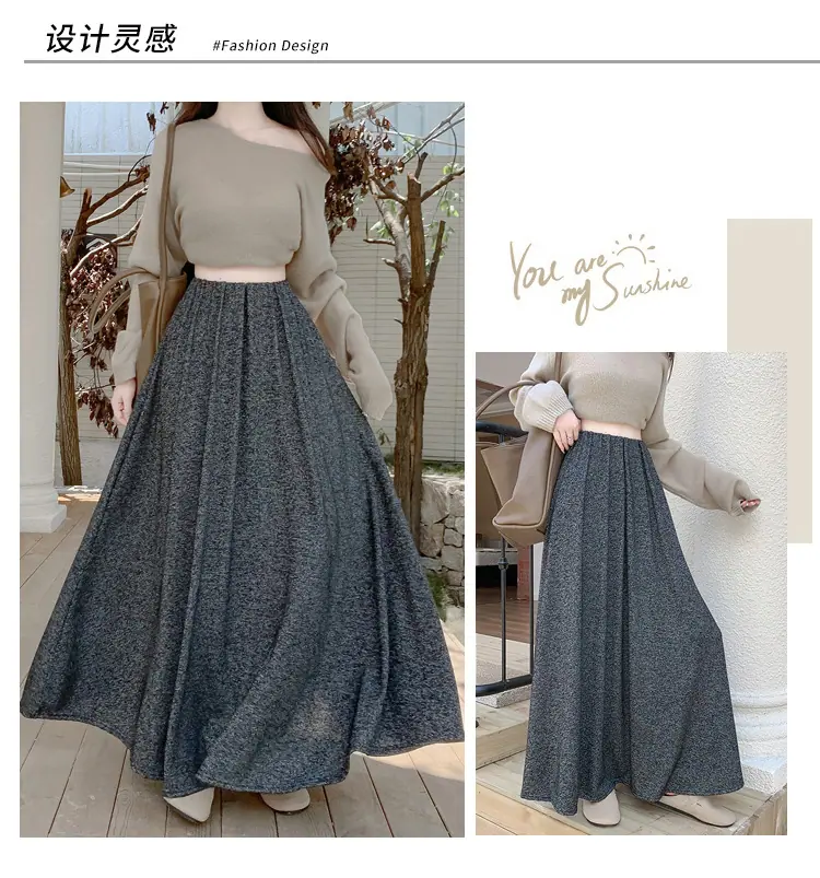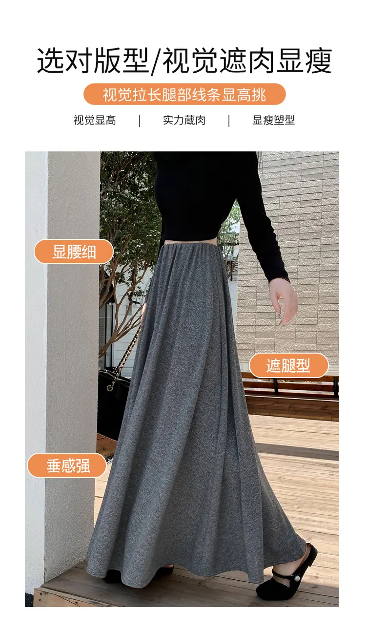 Falda de Cintura Alta Estilo Holgado Mujer Otoño Adelgazante Versátil Cintura Elástica Falda Larga A-line Falda Acampanada Falda de Punto