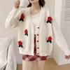 Cárdigan Suéter Floral Tridimensional Rojo para Mujer, Estilo Corto, Ajuste Holgado, Top de Punto Chic y Juvenil