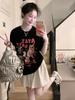 Camiseta de Algodón de Manga Corta para Mujer Divertida con Estampado de Pareja Infiel Camiseta de Manga Media Top Ropa Nicho Coreana Casual