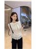 Nicho Sexy Sexy Lazo Camiseta de Manga Larga Principios de Otoño Diseño de Encaje Empalmado Look Adelgazante Top de Deseo Puro