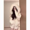 Top con Capucha y Cuello de Piel, Nuevo Suéter Jacket Estilo Coreano Holgado, Cárdigan de Punto para Mujer, Moda Otoño e Invierno