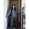 Camiseta de Manga Larga a Rayas con Cuello Redondo Retro Coreana para Mujer Otoño Nuevo Diseño Casual de Nicho Suéter Holgado