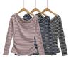 623-25 Nuevo Estilo Otoño Estilo Europeo y Americano Estilo Blogger Ins Top Básico Casual de Manga Larga Rayado de un Hombro Camiseta