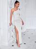 Vestido de Noche Nuevo Sexy Europeo y Americano Transfronterizo con Abertura con Volantes y Vestido de Noche Ajustado que Abraza las Caderas
