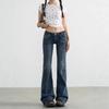 Jeans de Mujer de Verano 2025 Estilo Americano Vintage Lavado Azul Largos Elásticos de Cintura Ultra Baja Acampanados