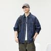 Camisa Denim de Trabajo Moda de Primavera y Otoño Marca Holgada Americana Casual Retro Simple Delgada Manga Larga Azul Algodón Chaqueta