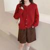 Suéter Preguiçoso de Gola Redonda Estilo Japonês e Coreano para Mulheres, Outono e Inverno Novo Doce Colorido Botão de Coração Moda Tricotado Jaqueta Cardigã Espesso