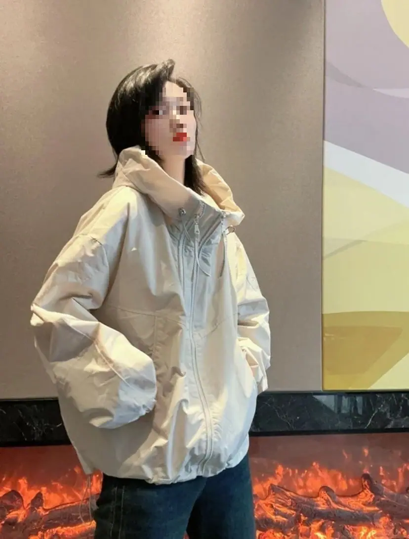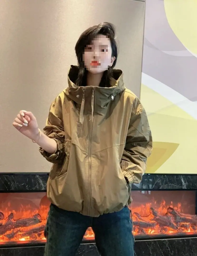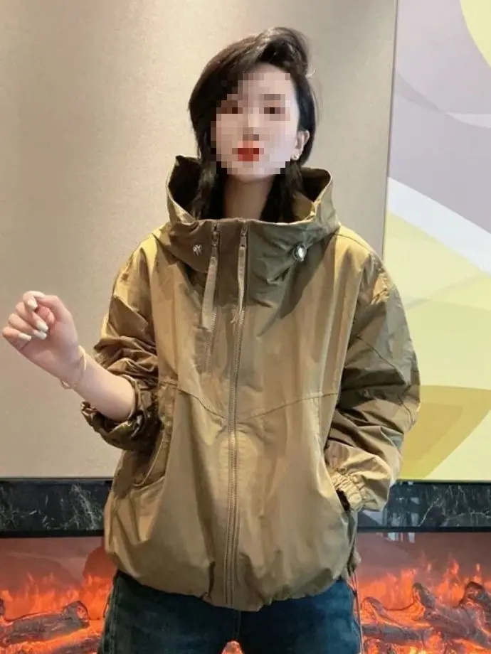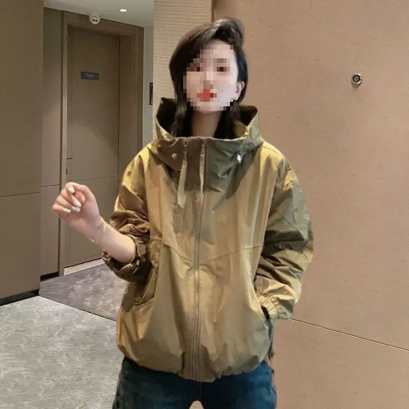Abrigo chaqueta holgada para mamá de mediana edad para exteriores 2025 primavera y otoño nueva moda versátil cortavientos con capucha ropa exterior marea