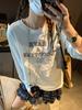 Camiseta Suelta de Manga Larga con Cuello Redondo Bordada con Letras Estilo Coreano Blogger de Moda Estilo Perezoso Rizado Mq0841