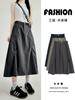 Falda de Trabajo Gris Americana con Cordón para Mujer Verano Nueva Cintura Alta Aspecto Adelgazante Falda de Línea A Falda Pequeña de Longitud Media