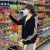 Chamarra Sudadera Negra Corta con Capucha para Mujer 2026 Nuevo Principios de Otoño Cuello Alto Tres Rayas Deportiva Delgada Ropa Estilo Coreano