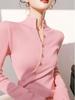 Camiseta de punto de cuello alto a media altura única y chic de otoño e invierno para mujer, top ajustado de manga larga de nicho