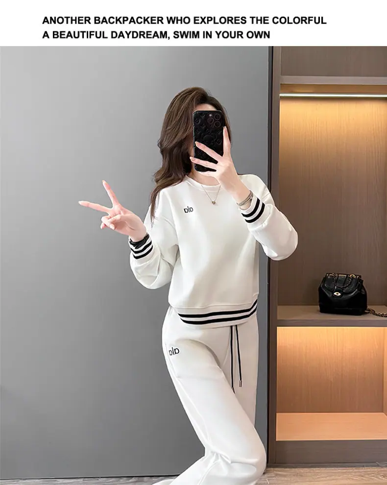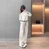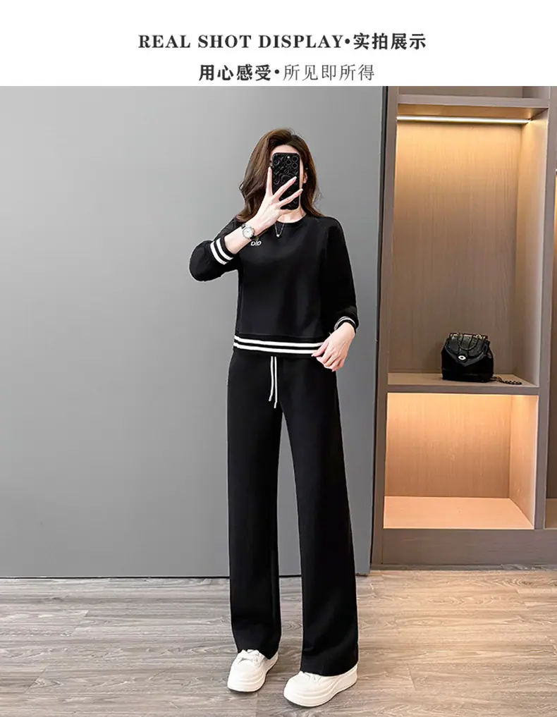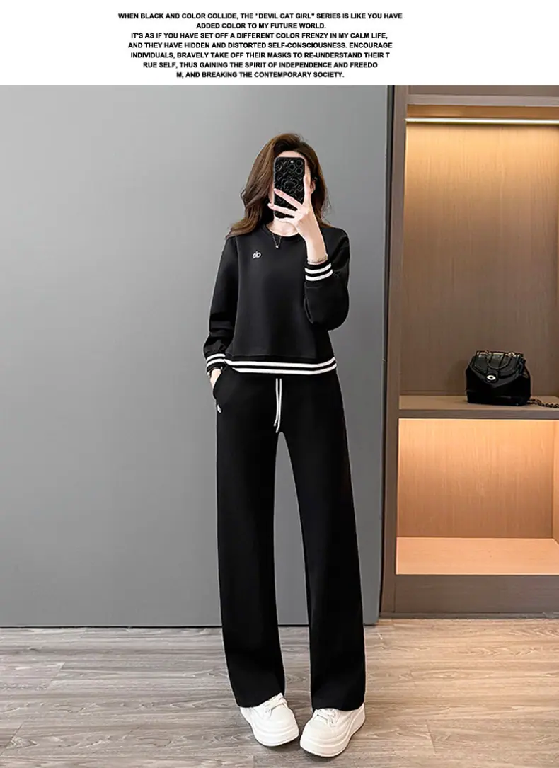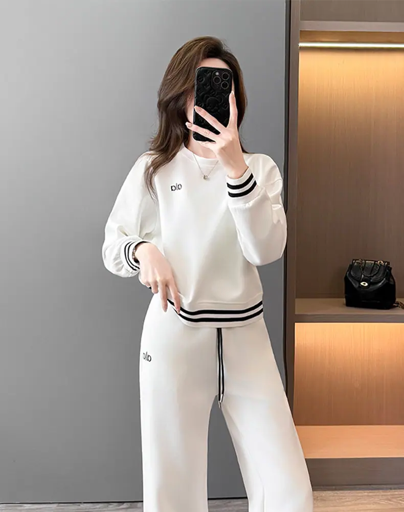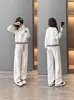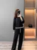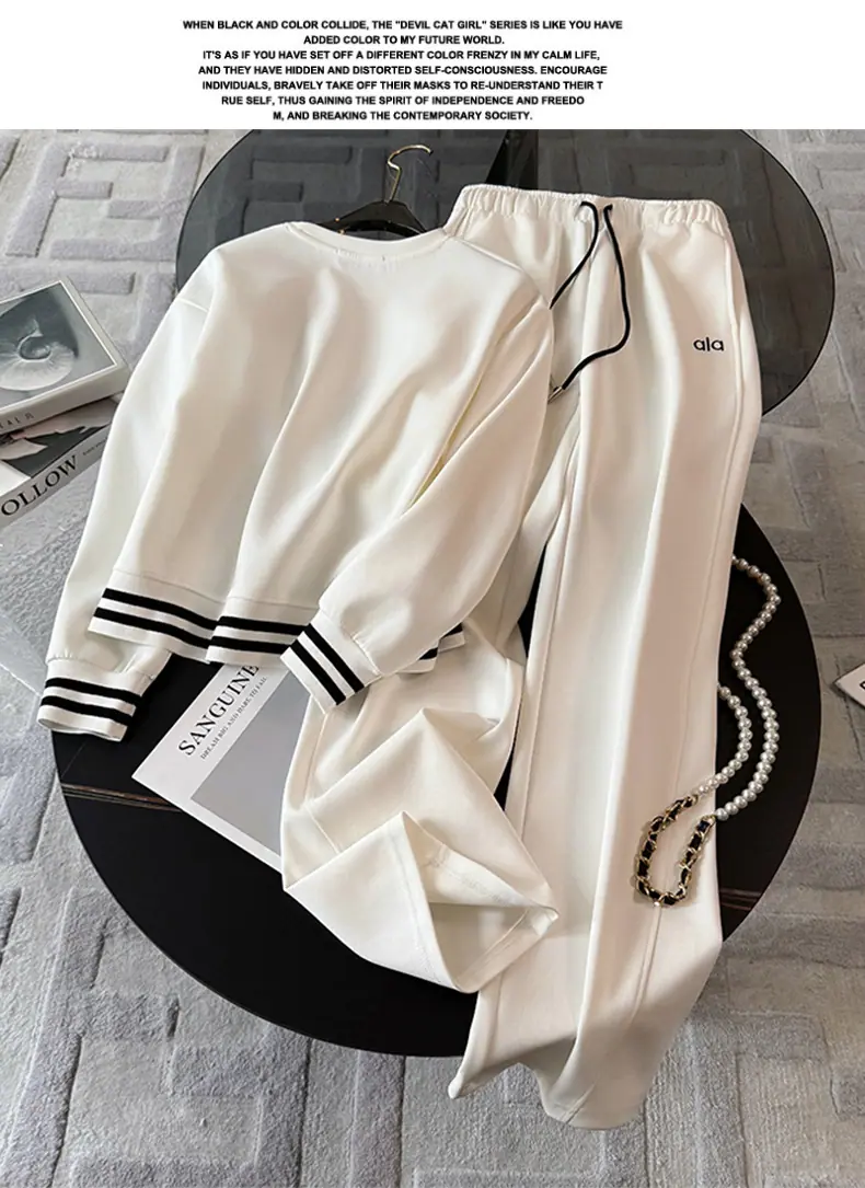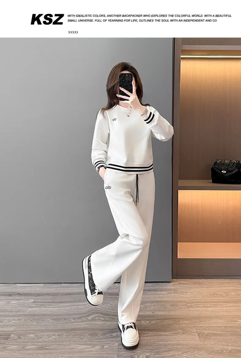 Conjunto de Ropa Deportiva Casual de Alta Gama de Estación Europea para Mujer 2025 Moda Otoño Reductor de Edad Top de Manga Larga Pantalones de Pierna Ancha Conjunto de Dos Piezas
