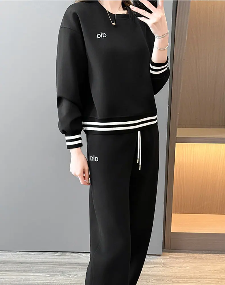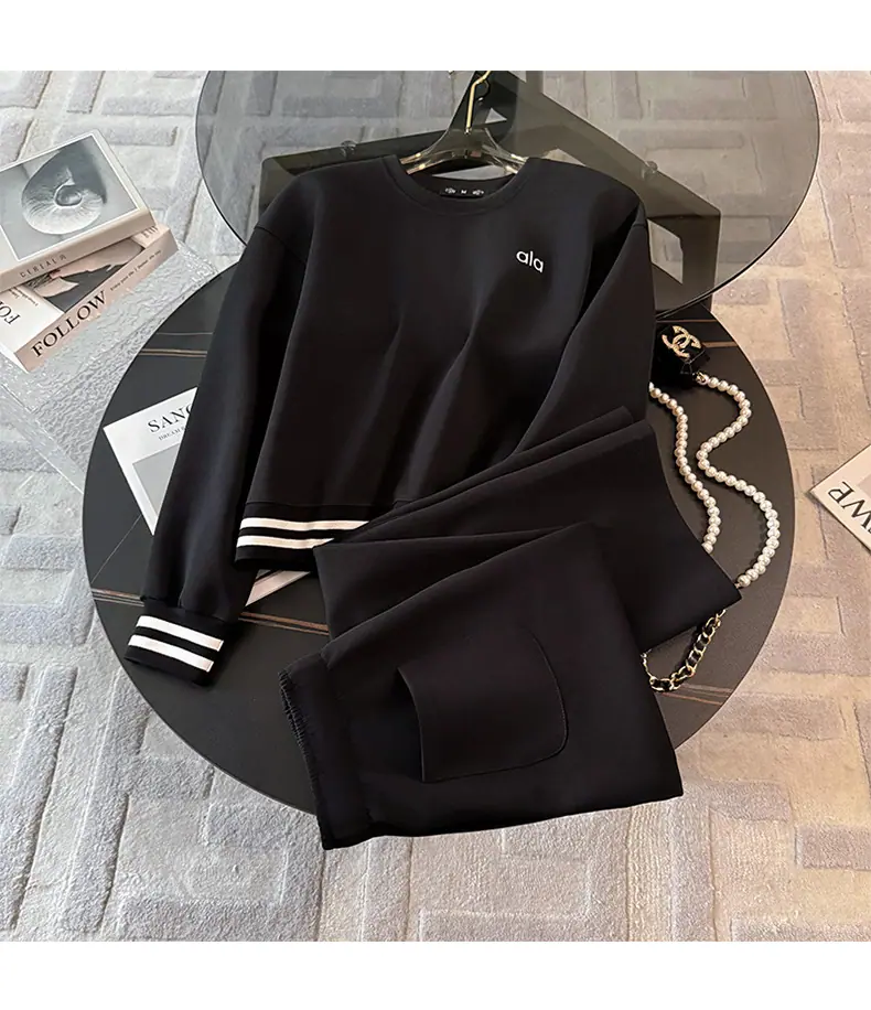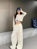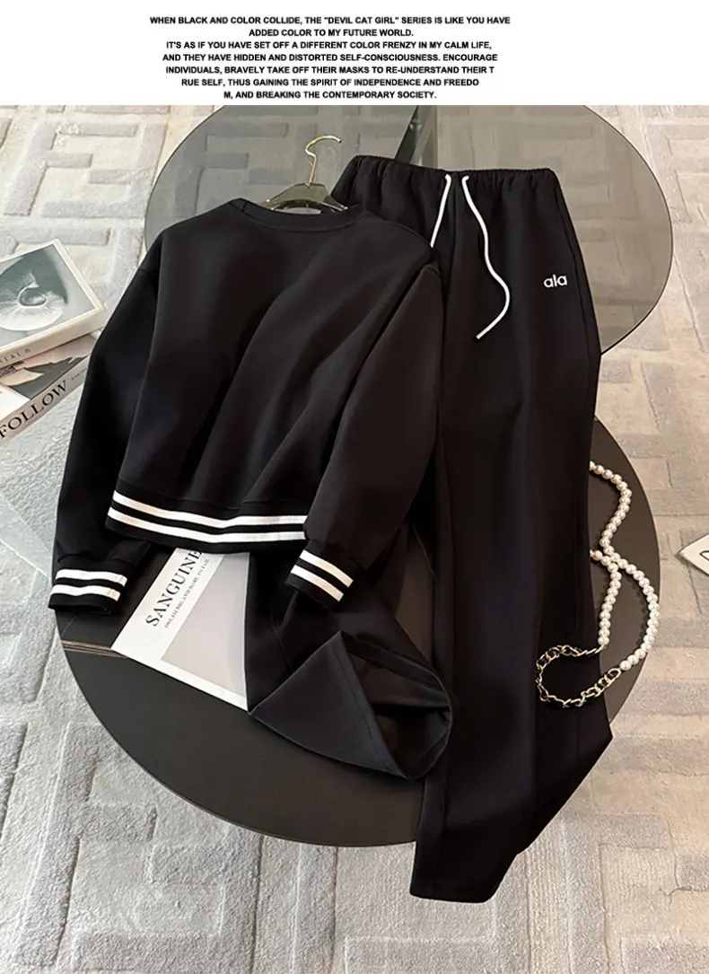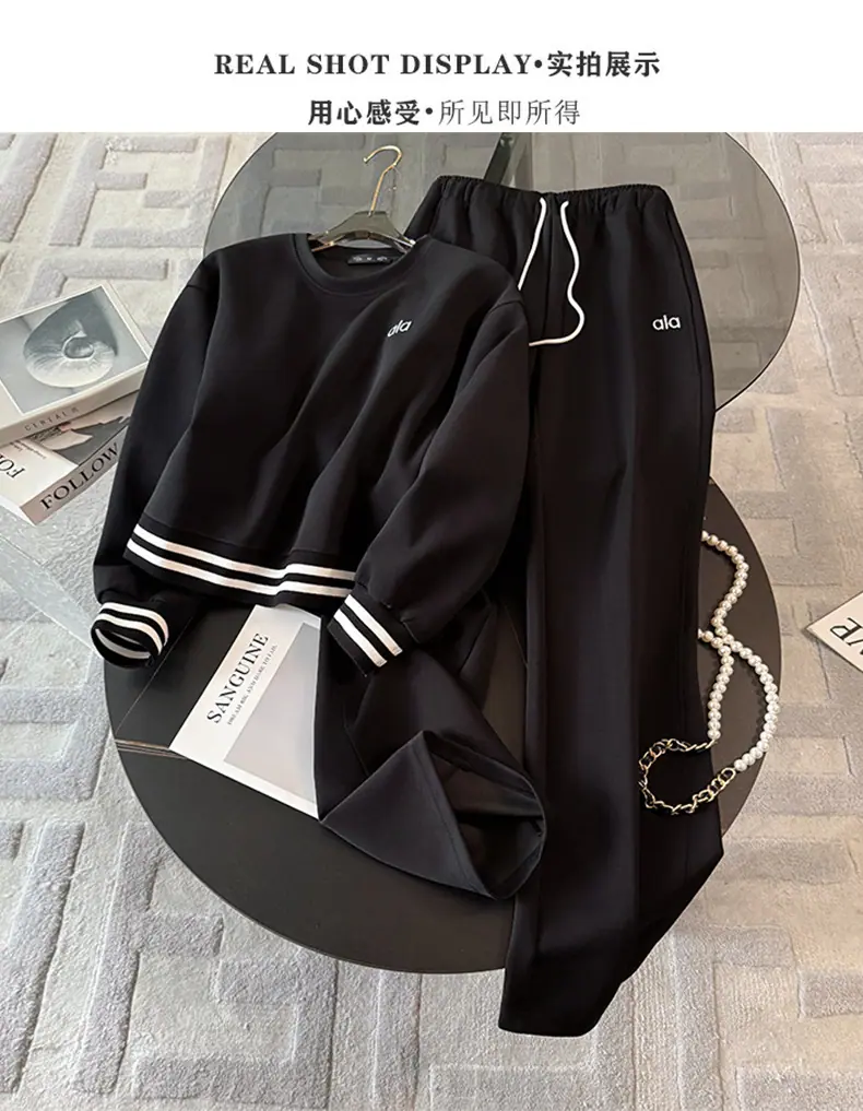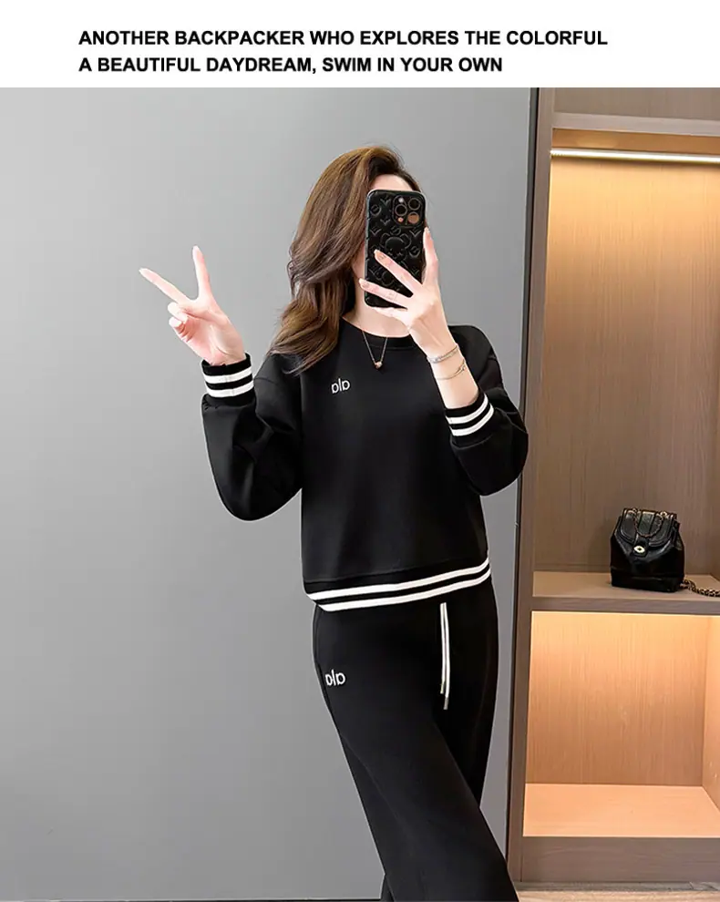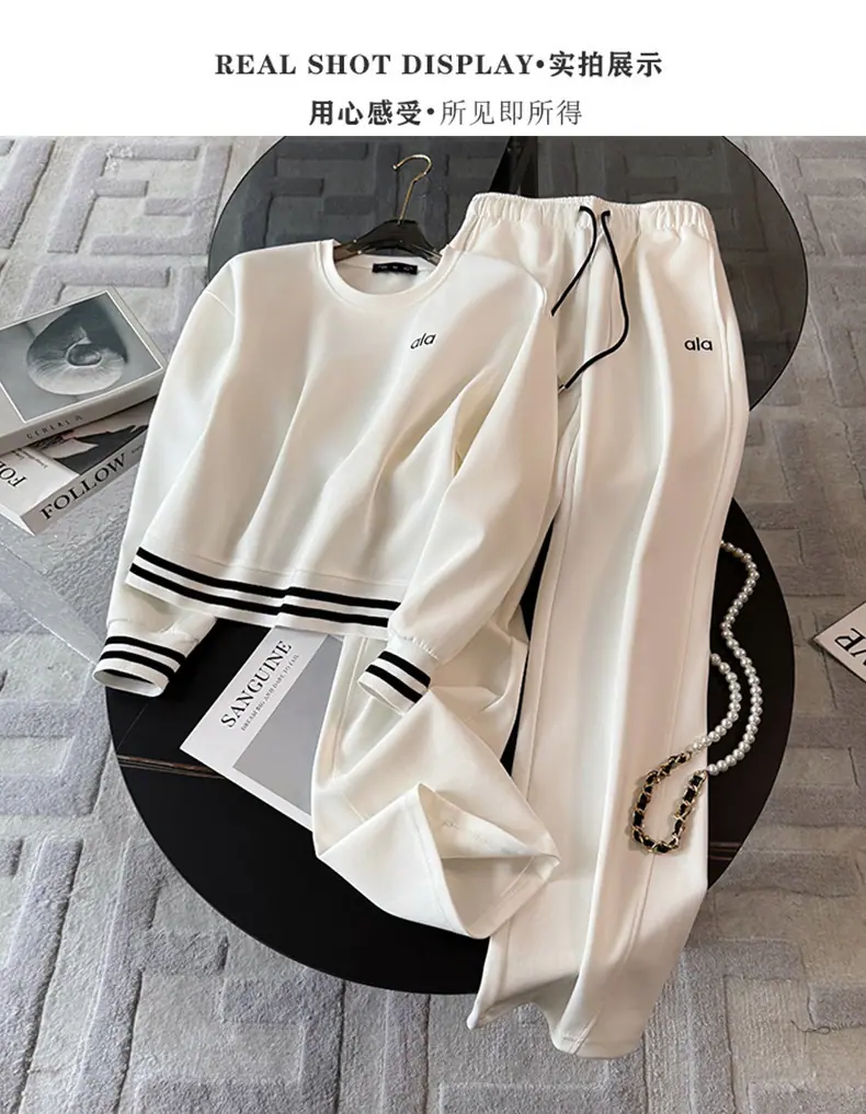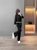 Conjunto de Ropa Deportiva Casual de Alta Gama de Estación Europea para Mujer 2025 Moda Otoño Reductor de Edad Top de Manga Larga Pantalones de Pierna Ancha Conjunto de Dos Piezas