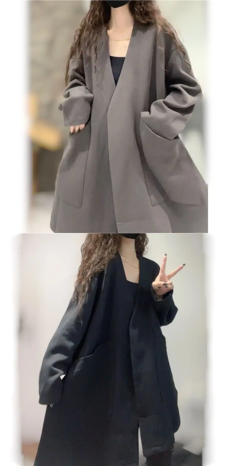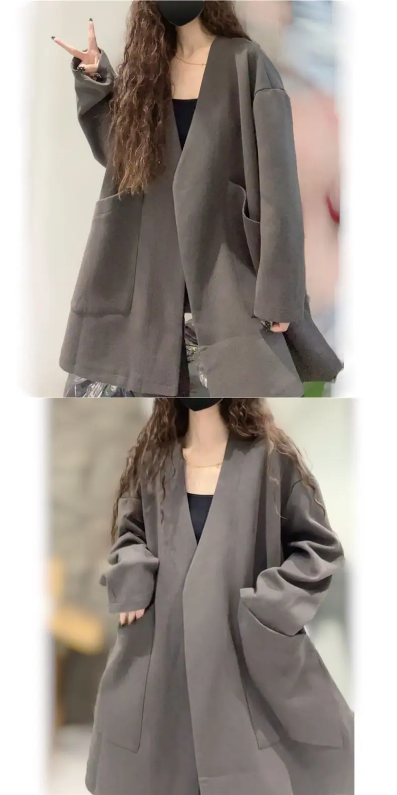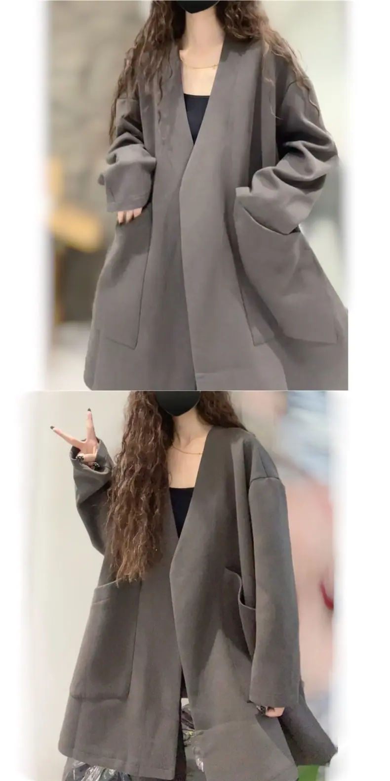 Talla grande producto nuevo 200 jin otoño nuevo abrigo holgado nuevo cárdigan de longitud media versátil gabardina temperamento