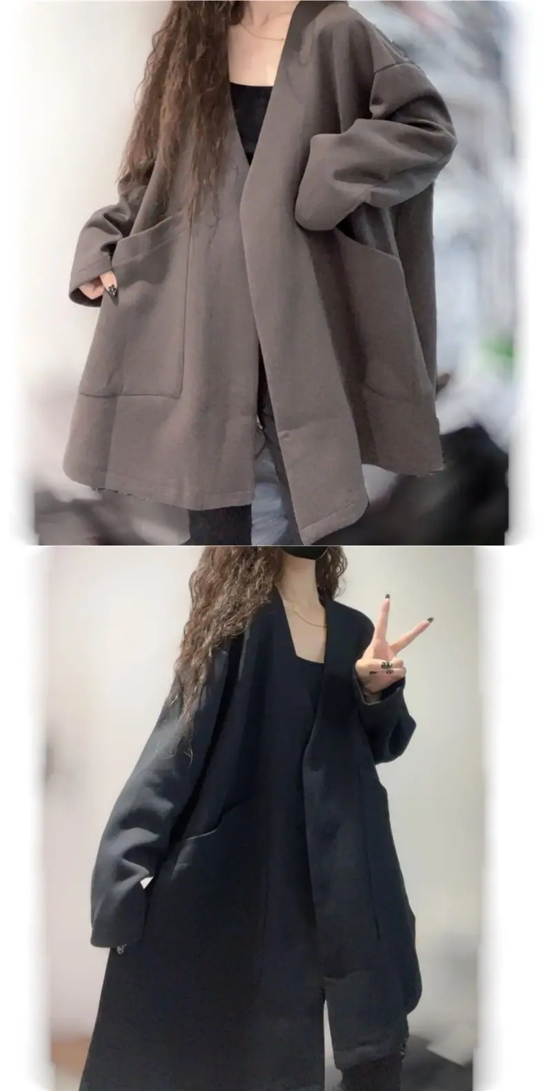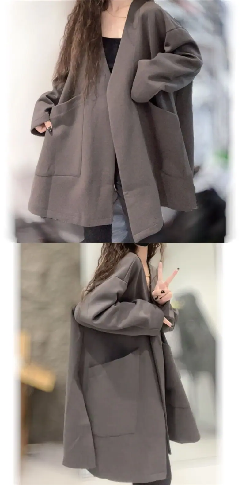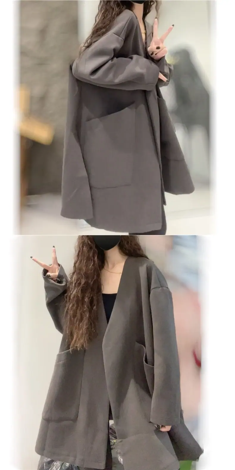 Talla grande producto nuevo 200 jin otoño nuevo abrigo holgado nuevo cárdigan de longitud media versátil gabardina temperamento