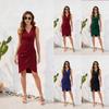 Vestido de Primavera y Verano para Mujer Nuevo Color Sólido Cintura Vestido de fiesta Vestido Cuello en V Sin Mangas Dobladillo Irregular