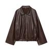 Chaqueta de Cuero con Solapa Retro Estilo Europeo y Americano, Cremallera, Bolsillo con Cinturón, Otoño, Holgada, Delgado, Casual para Mujer