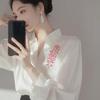 2025 Nueva Camisa Blanca Ropa de Negocios para Mujer Sentido Ropa de Primavera Hermosa Camisa Pequeña Top Francés Estampado