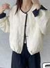 Chaqueta Corta Acolchada de Cuello Redondo Estilo Europeo para Mujer, Otoño 2025 Nueva Holgada Adelgazante Casual Petite Chaqueta Top