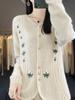 Compra 2025 Nuevo Cárdigan de Punto de Lana Pura Otoño e Invierno para Mujer Cuello Redondo Combinación de Colores Bordado Suelto Casual Manga Larga Chaqueta Abotonada al por mayor en Joom.pro