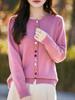Cardigan de Punto Nuevo Redondo Otoño Temprano 2025 Manga Larga para Mujer Botón de Color Color Puro Holgado Versátil Suave Tópico Chaqueta