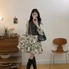 Vestido Floral Retro Francés Otoño Talla Grande mm Gordita Aspecto Adelgazante Cubre Vientre Reductor de Edad Traje Chaleco de PU Conjunto de Dos Piezas