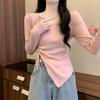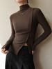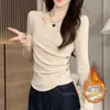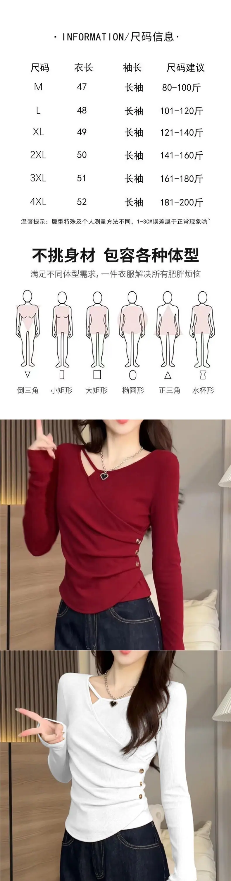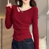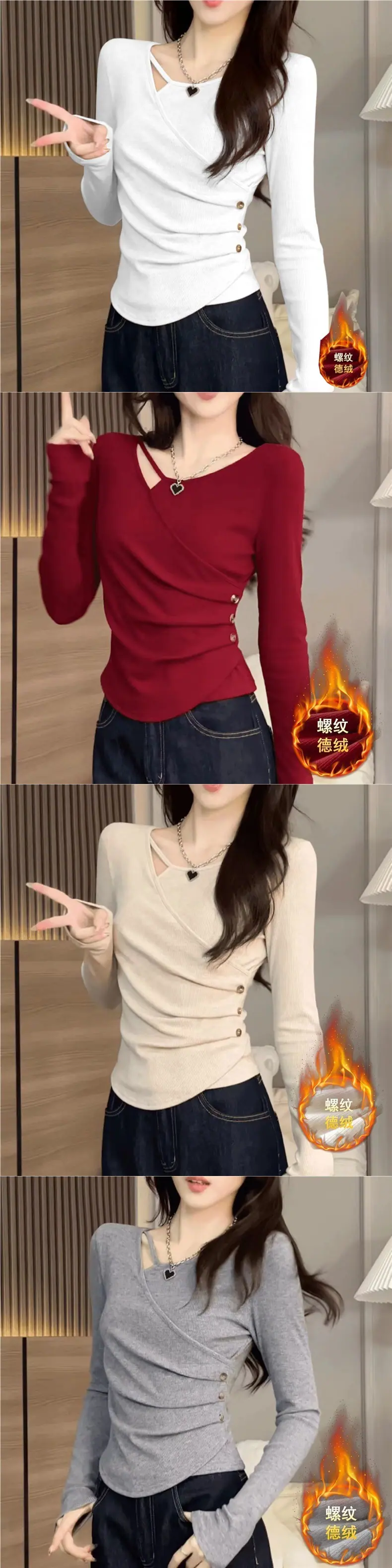 Camiseta básica de terciopelo irregular para mujer, ropa interior, otoño e invierno, nuevo diseño ajustado con sentido nicho, camiseta de manga larga