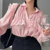 Camisa Texturizada con Volantes Dulce y Chic de Otoño Nueva para Mujer de Dongdaemun, Corea