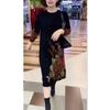 Vestido holgado de mujer Big Aimei Yiyuan 22906, otoño e invierno, nuevo, con cuello redondo, manga larga y flores, largo medio