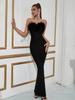 Vestido Europeo y Americano Transfronterizo para Mujer Falda Vendaje Fiesta de Banquete Elegante Largo Strapless Pluma Vestido de Noche