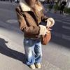 Otoño e Invierno 2025 Nuevo Top Acolchado Grueso Ajustado Corto Chaqueta con Diseño de Cuello de Piel Marrón y Verde Retro para Mujer
