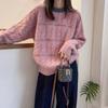 Suéter holgado suave y ceroso de manga larga estilo coreano para mujer en otoño e invierno, nuevo estilo, jersey de color contrastante chic con trenzas, cuello redondo, tejido de fondo