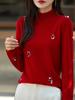 Camiseta Interior de Cuello Alto Medio con Estampado de Flores Otoño e Invierno Nueva Versátil de Punto de Alta Gama Ropa de Punto para Mujer Lana de Punto Roja