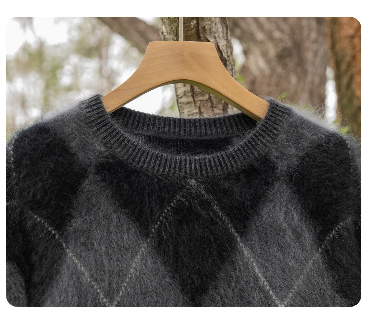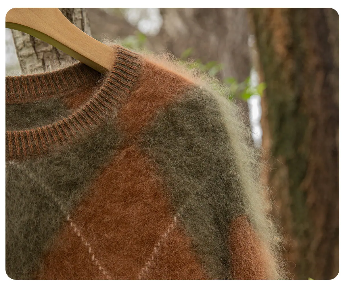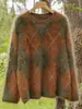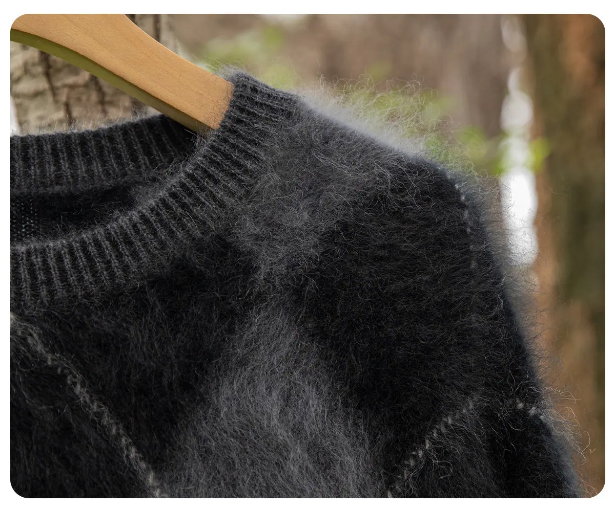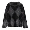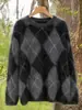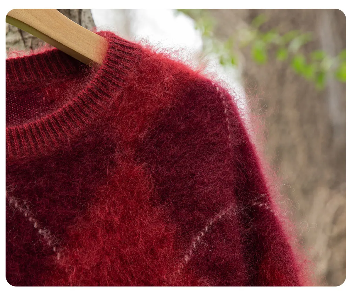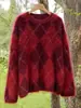 Primera capa tejida 100% Cachemira Pura Cuello Redondo Cepillado Argyle Cuello Redondo Suave y Amigable con la Piel Suéter Grueso para Mujer