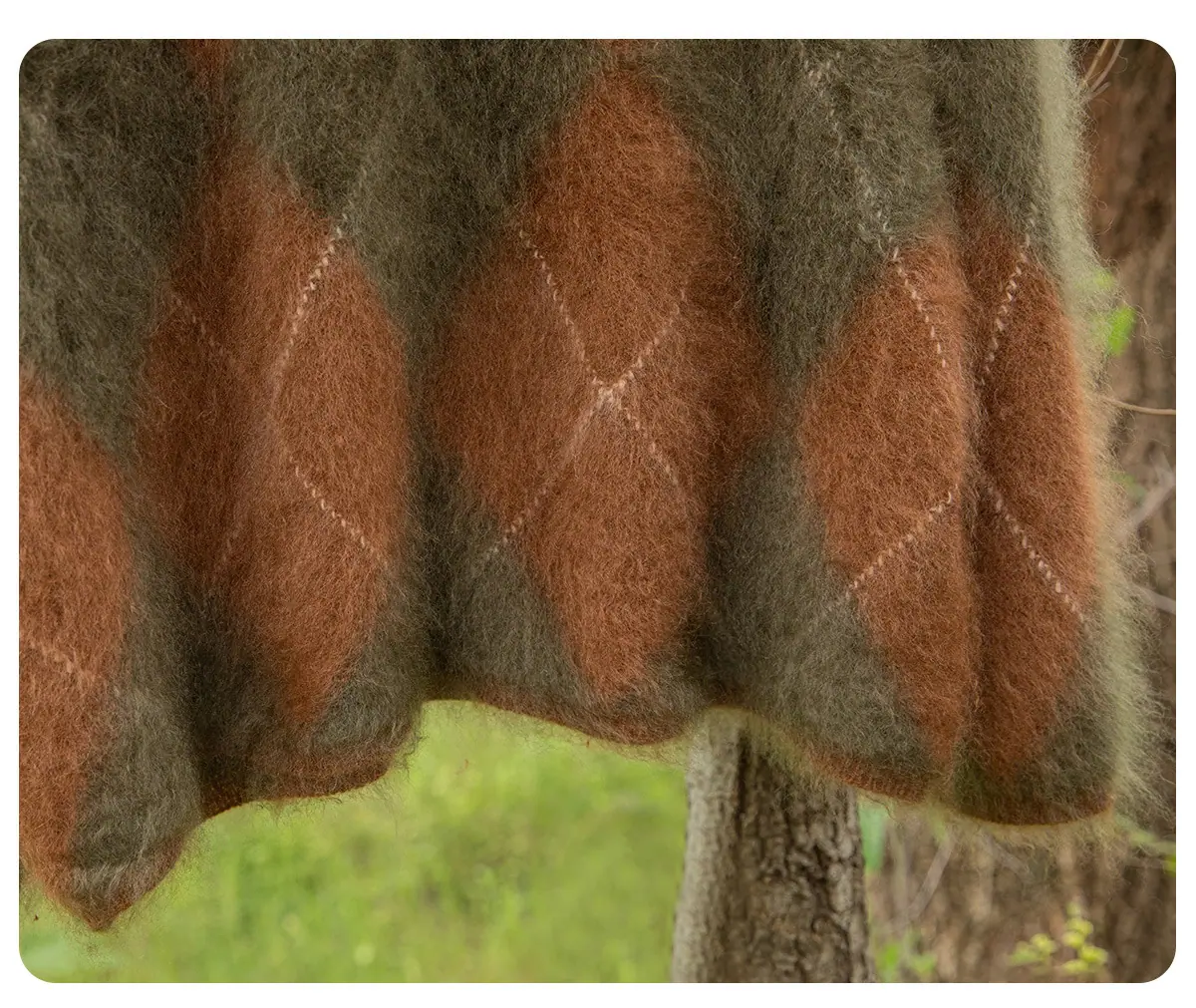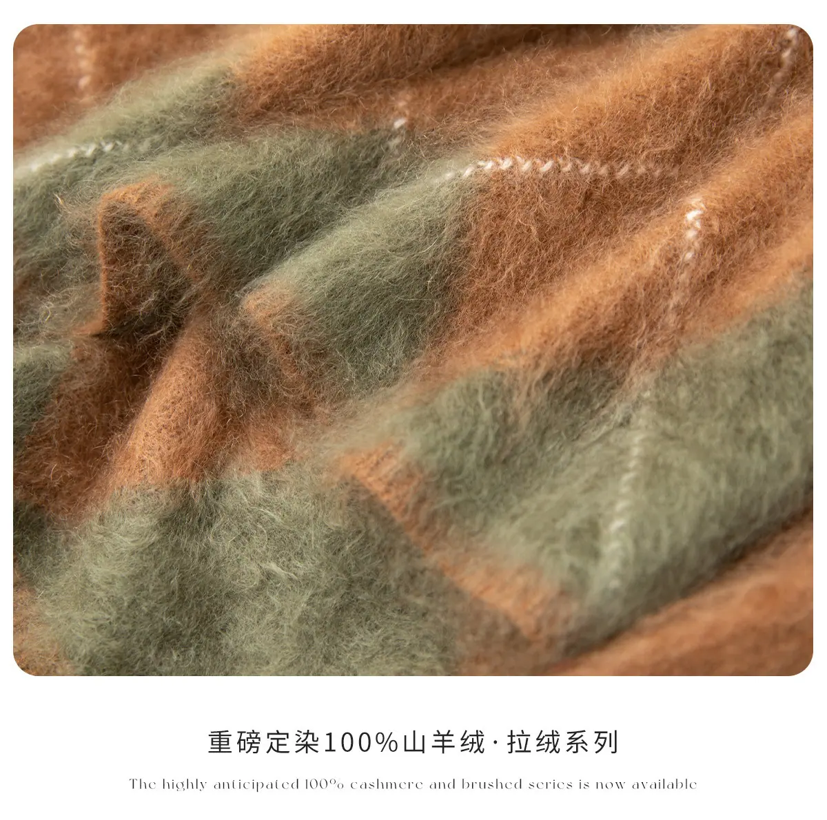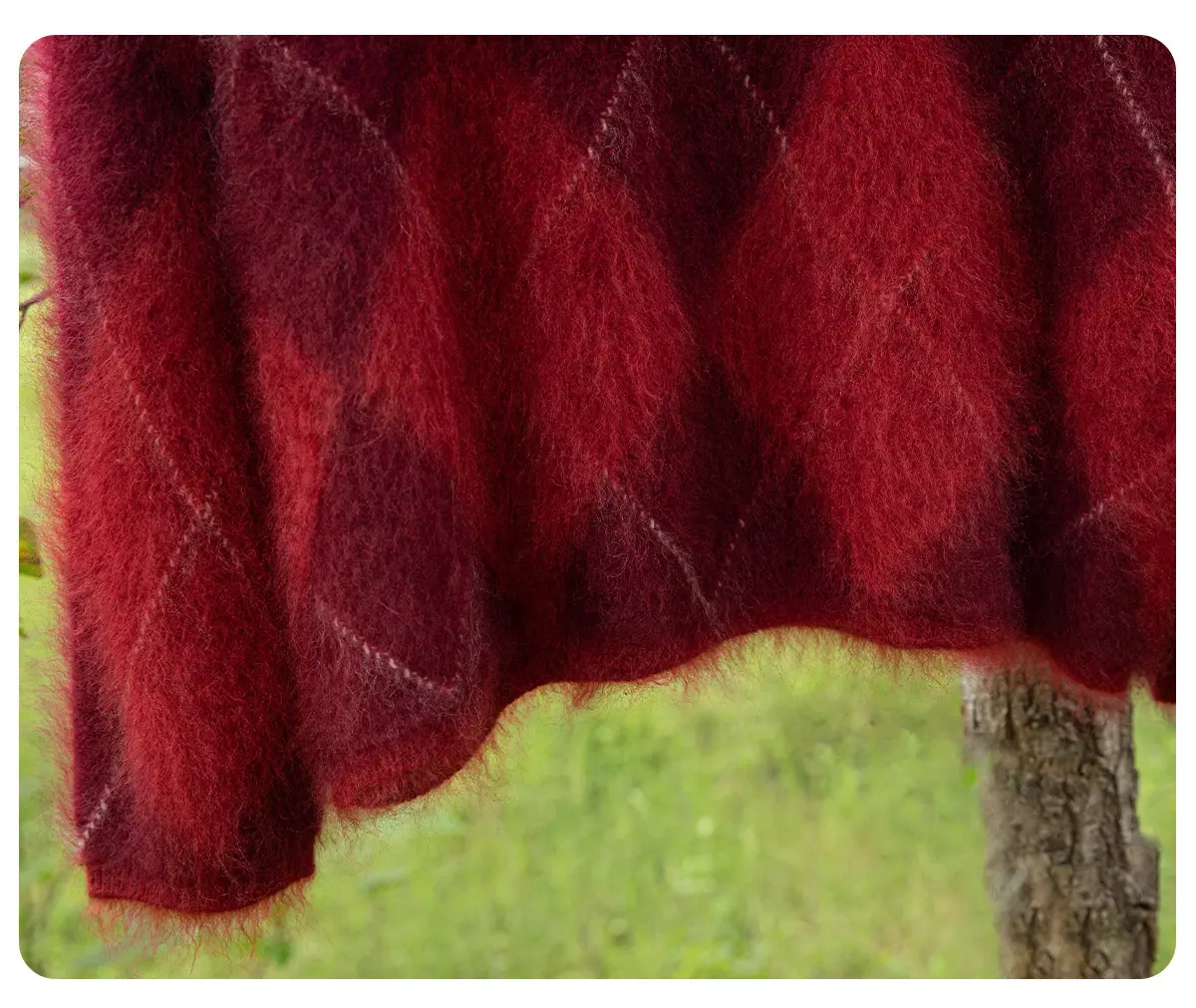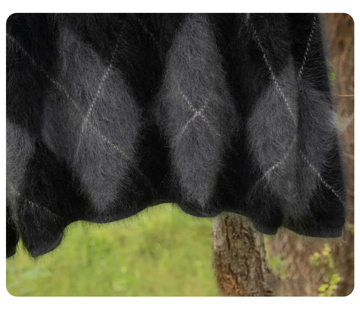 Primera capa tejida 100% Cachemira Pura Cuello Redondo Cepillado Argyle Cuello Redondo Suave y Amigable con la Piel Suéter Grueso para Mujer