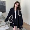 Suéter estilo perezoso en forma de corazón para mujer, nuevo diseño otoño e invierno 2025, cárdigan de punto suelto empalmado con malla, moderno