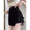 2025 Verano Negro Chica Caliente Falda Corta Mujer Look Adelgazante Plisada Cintura Alta Asimétrica Línea A Cubre Caderas Falda Pantalón Trendy Ins