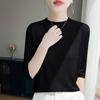 Compra 2025 Nuevo Verano Tencel Lyocell Punto Cuello Redondo Medio Alto Manga Tres Cuartos Top Jacquard Cuadros para Mujer al por mayor en Joom.pro