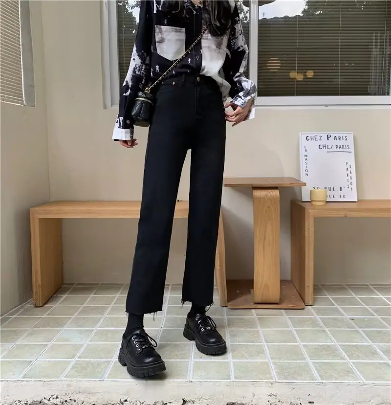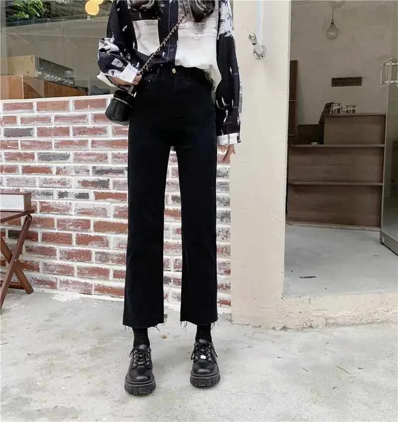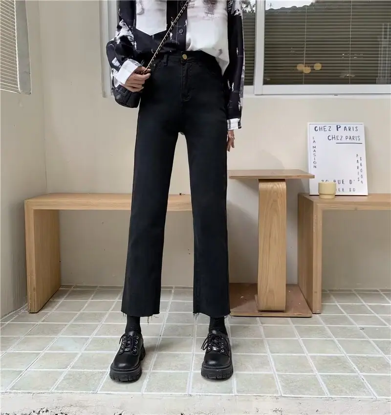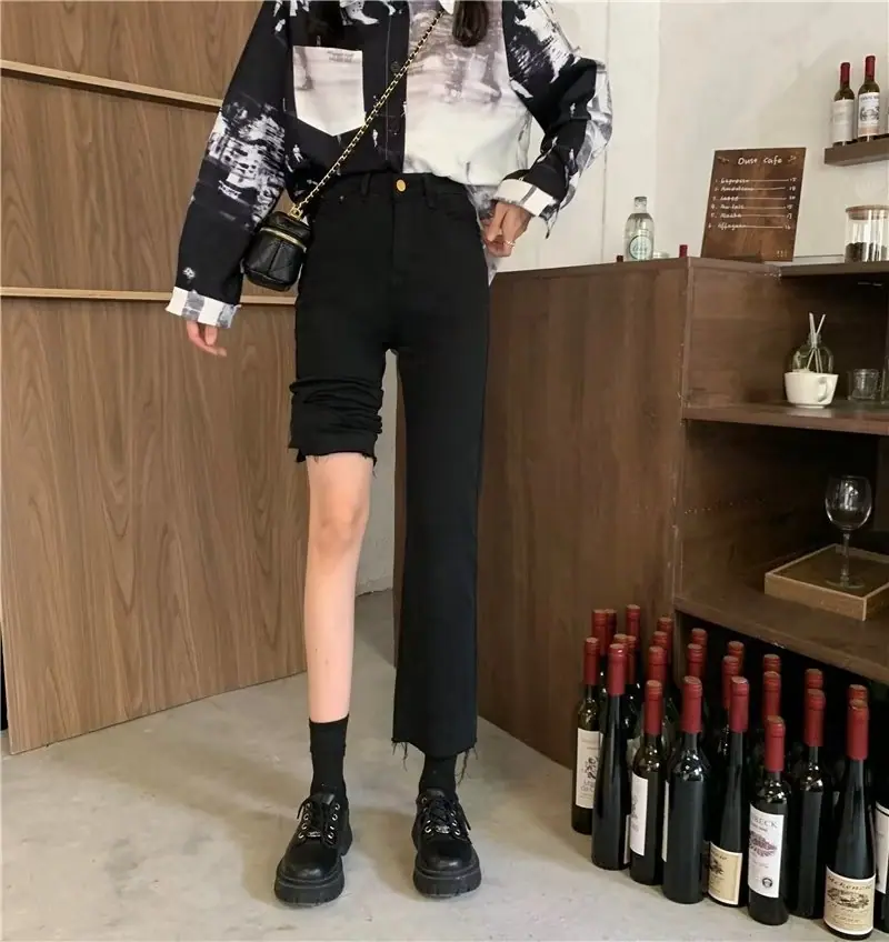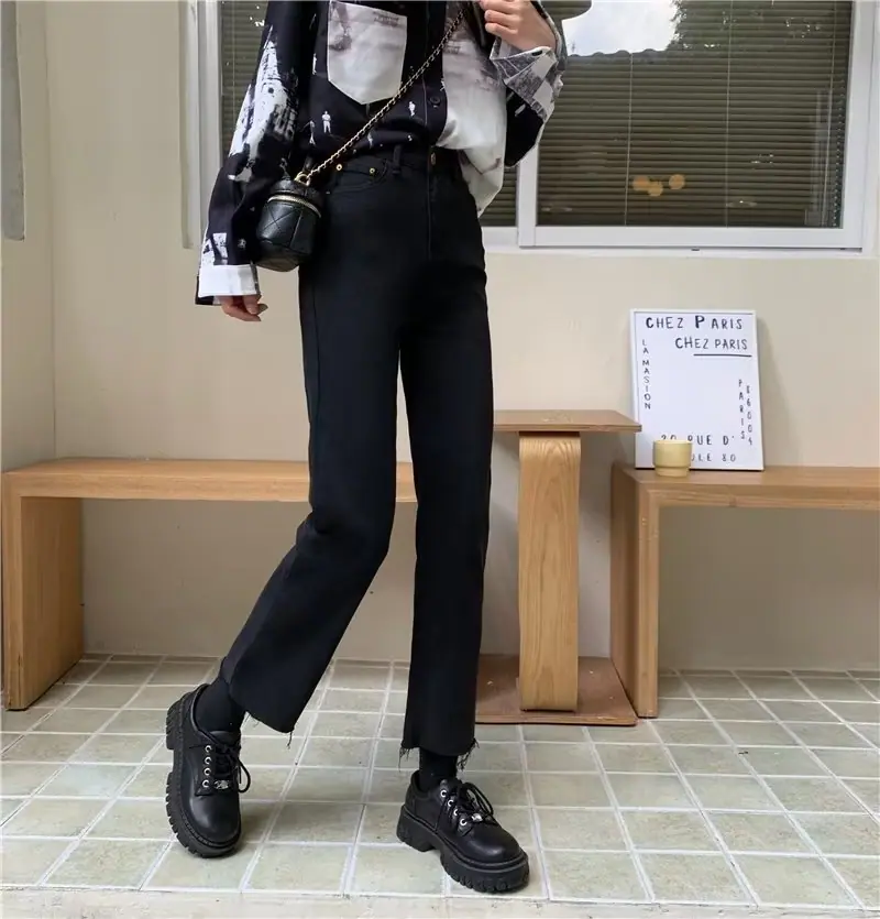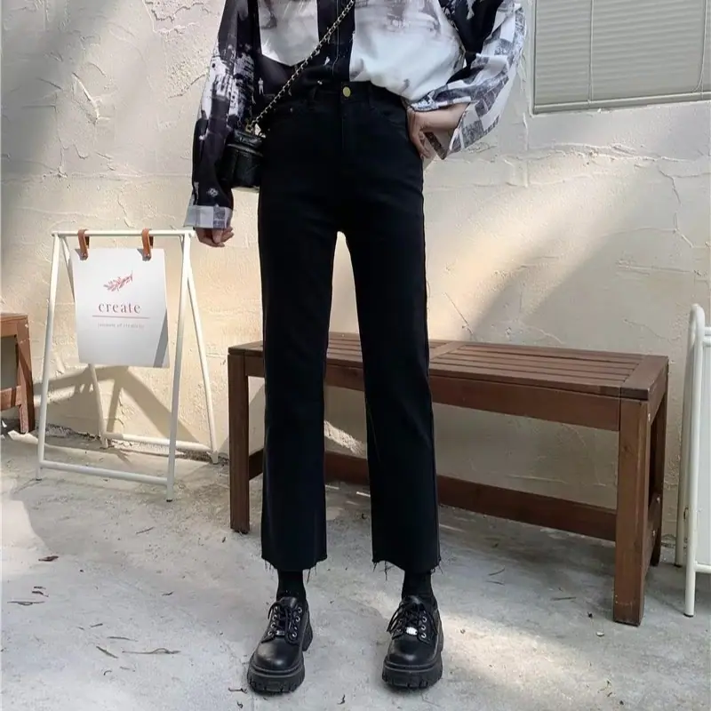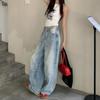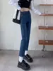 Jeans rectos de pierna ancha con abertura de talle alto azul lavado para mujer 2025 primavera nuevos pantalones largos ajustados y realzadores de la altura