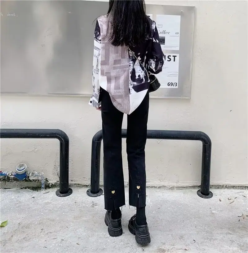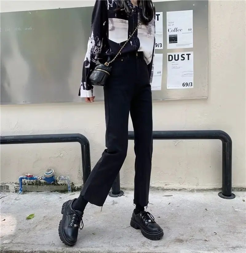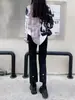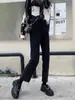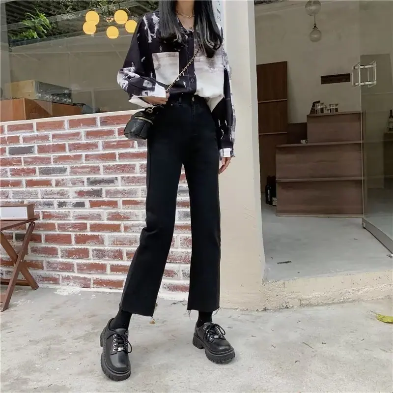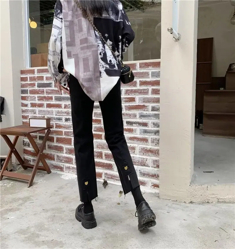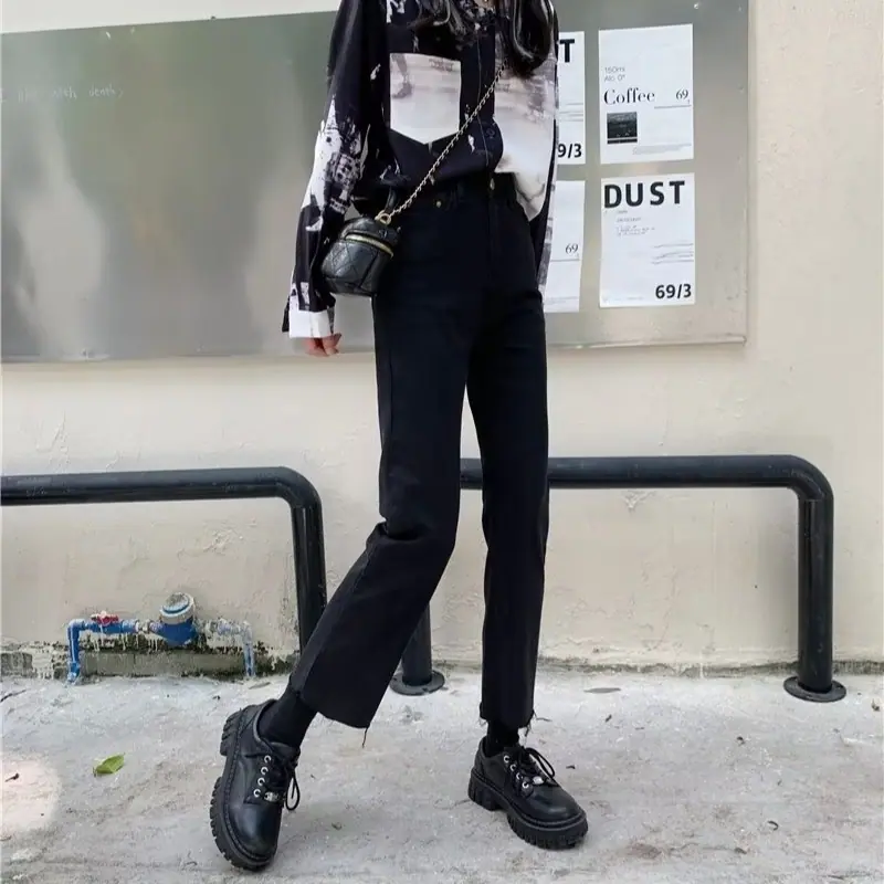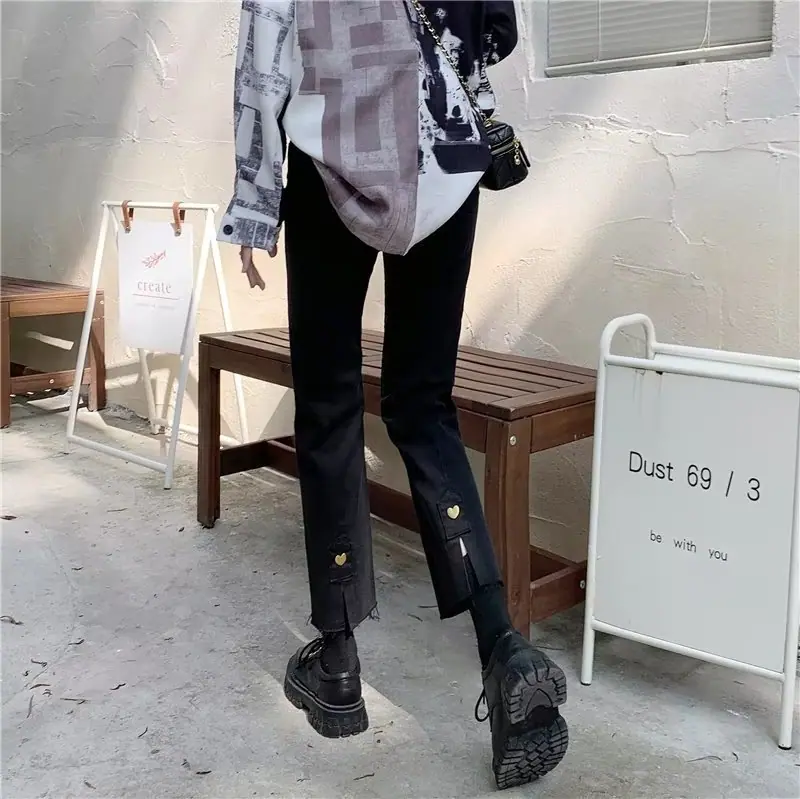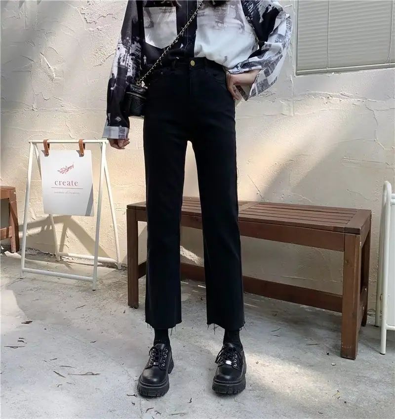 Jeans rectos de pierna ancha con abertura de talle alto azul lavado para mujer 2025 primavera nuevos pantalones largos ajustados y realzadores de la altura