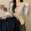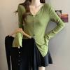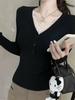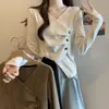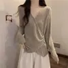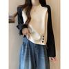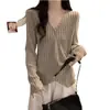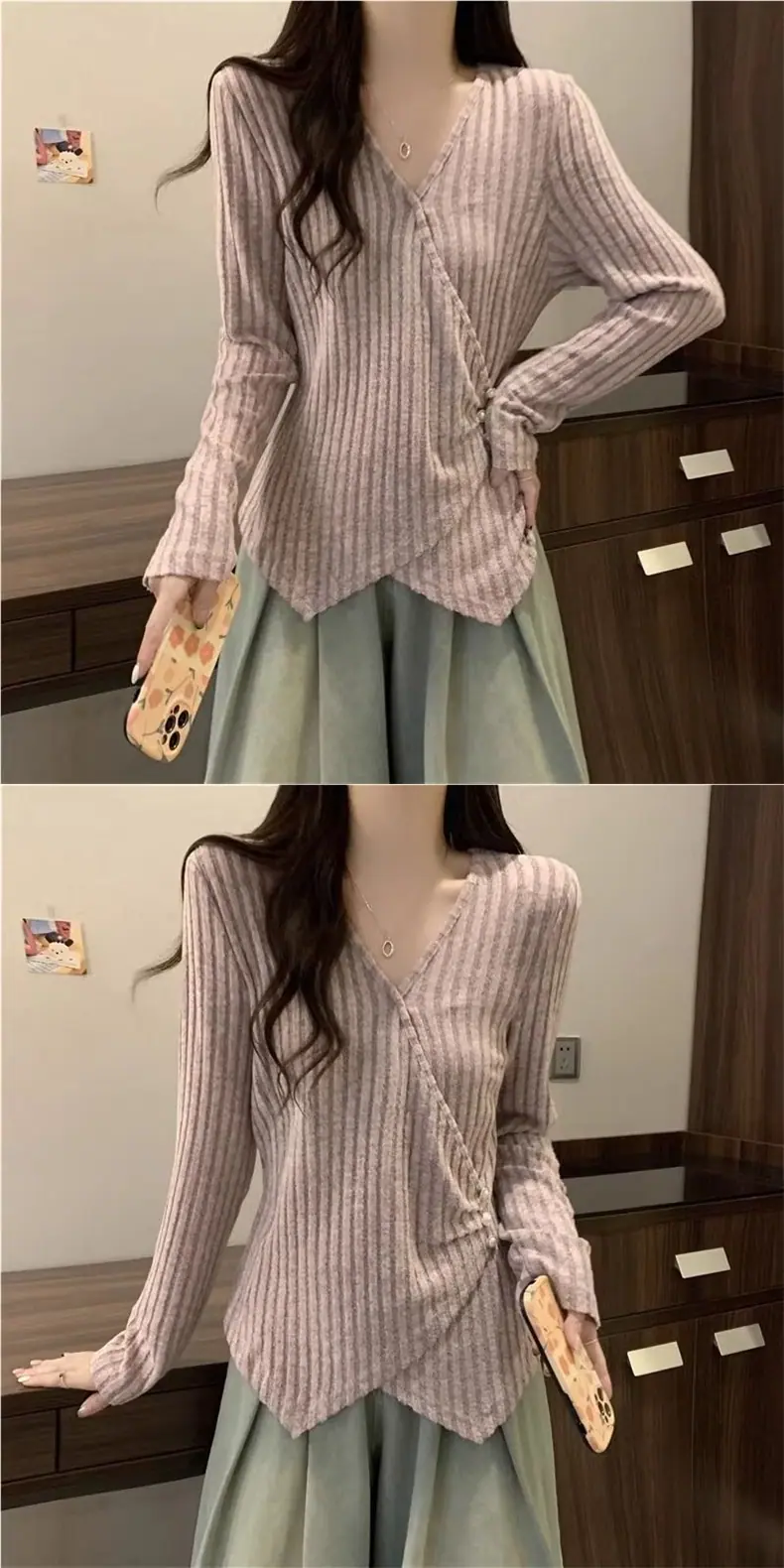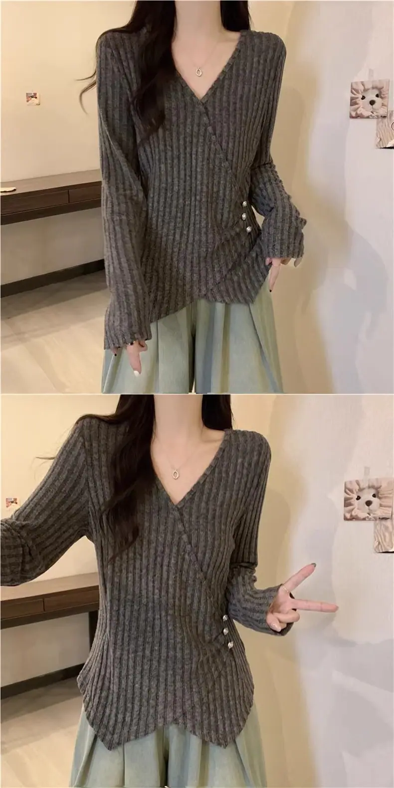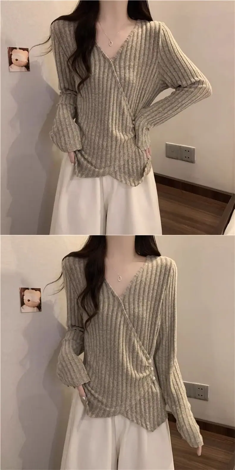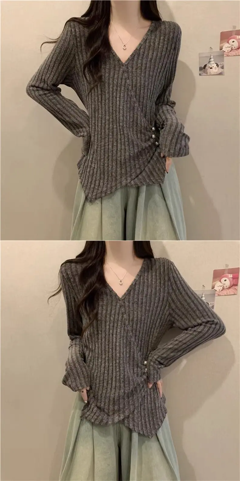 Talla Grande Primavera Otoño Sentido del Diseño Nicho Adelgazante Manga Larga Camiseta de Mujer Nueva Irregular Camiseta Base Cuello Hombro Recto Top